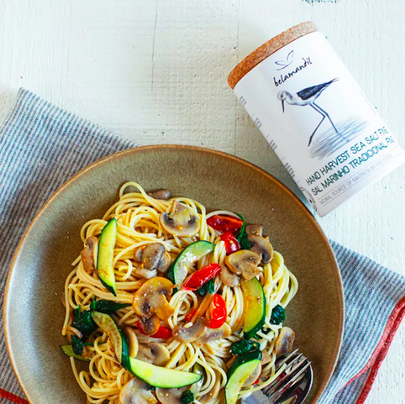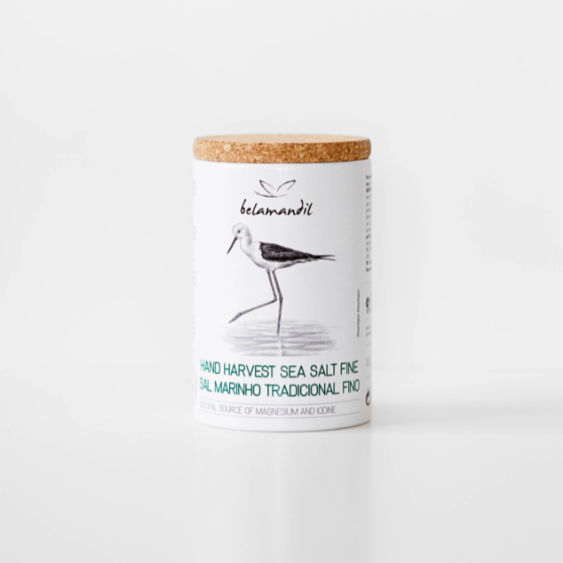 Discover how this natural, fresh sea salt from Portugal differs from refined and processed table salts! This artisanal fine sea salt is ideal for seasoning, cooking and curing your dishes. It has been mined by hand from the salt pans of ‘Belamandil’, in the Ria Formosa nature reserve. This allows practically all the rich minerals such as magnesium & iodine from the seawater to be retained in the final product. This salt contains no allergens or additives.