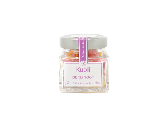 Berlingot is a French specialty with natural fruit flavours . It is presented in the form of small pyramids of different colours and always streaked with white.