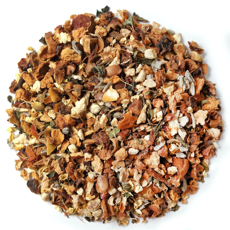INGREDIENTS: Apple pieces*, Ginger*, Orange peel*, Peppermint*, Sage