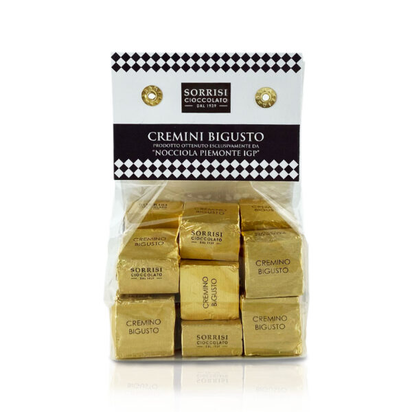 Cremini are a traditional chocolate from Turin, Piedmont. It has a typical squared shape and consists of three layers, of which the top and bottom ones are made of Gianduia chocolate, and the one in the middle changes with a unique flavor variation.